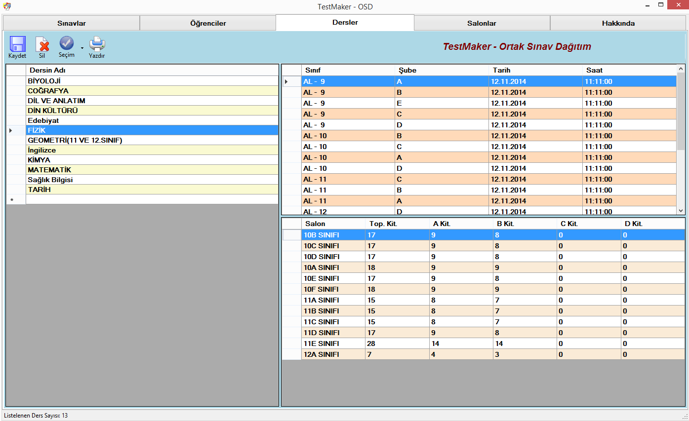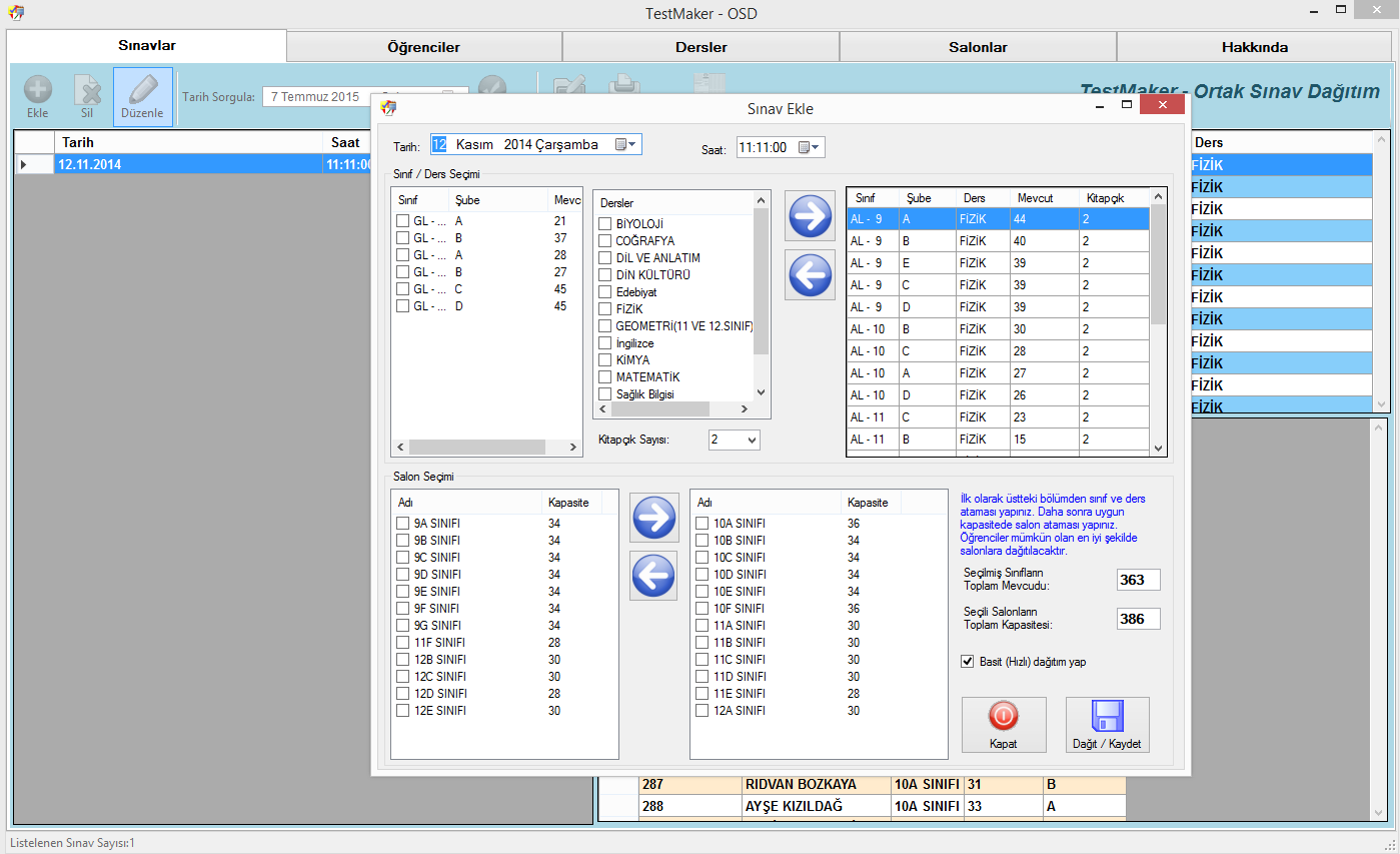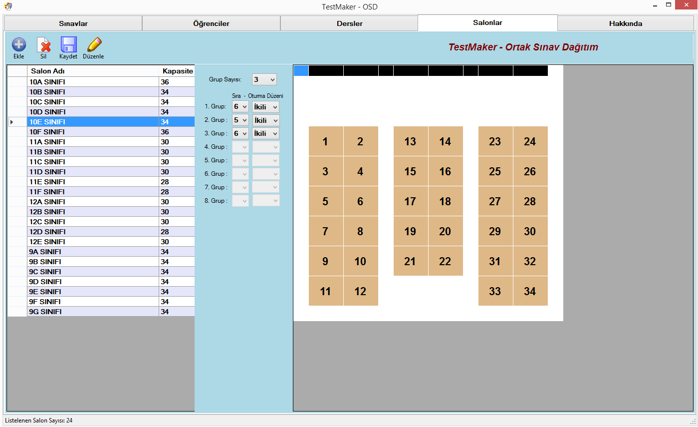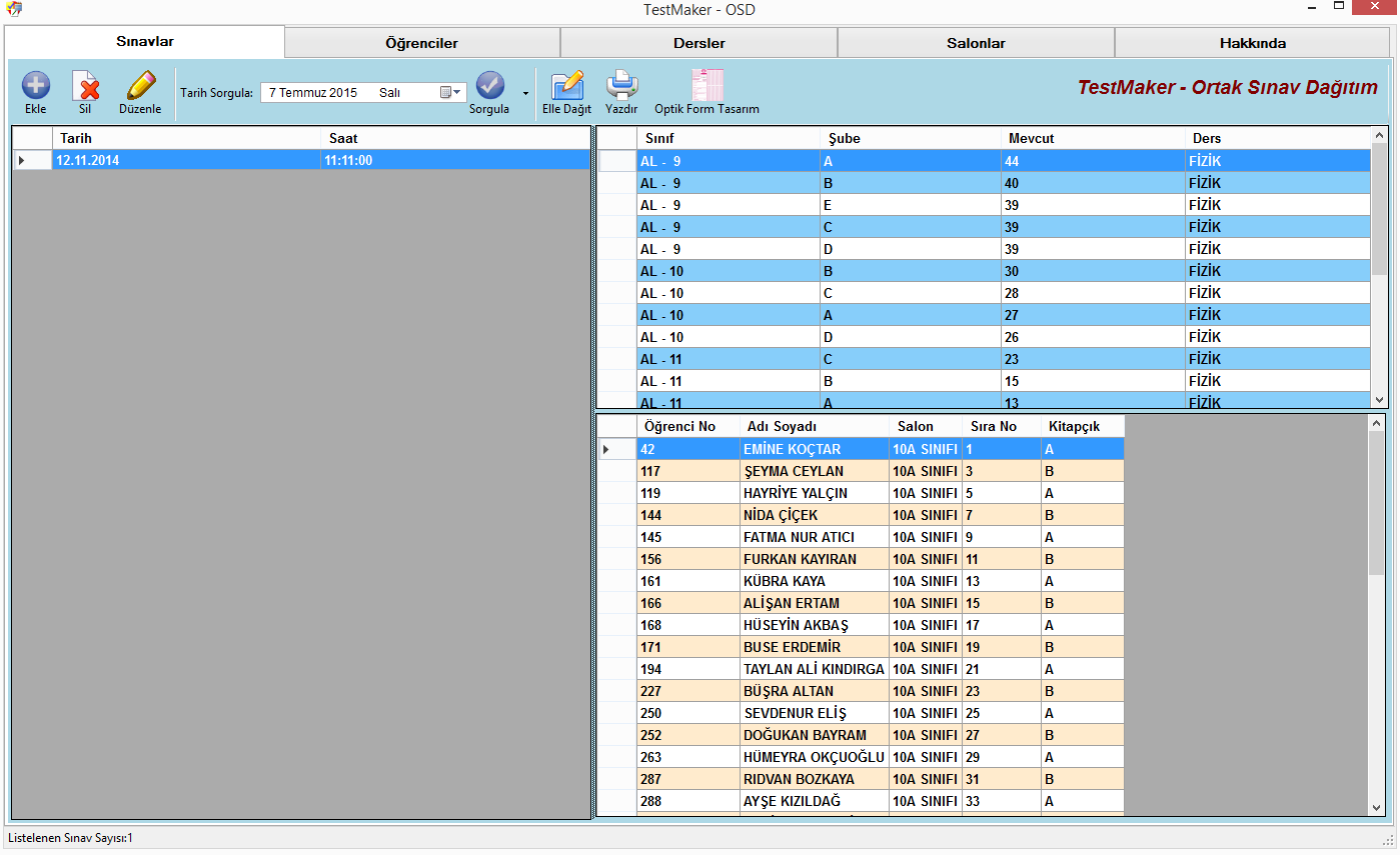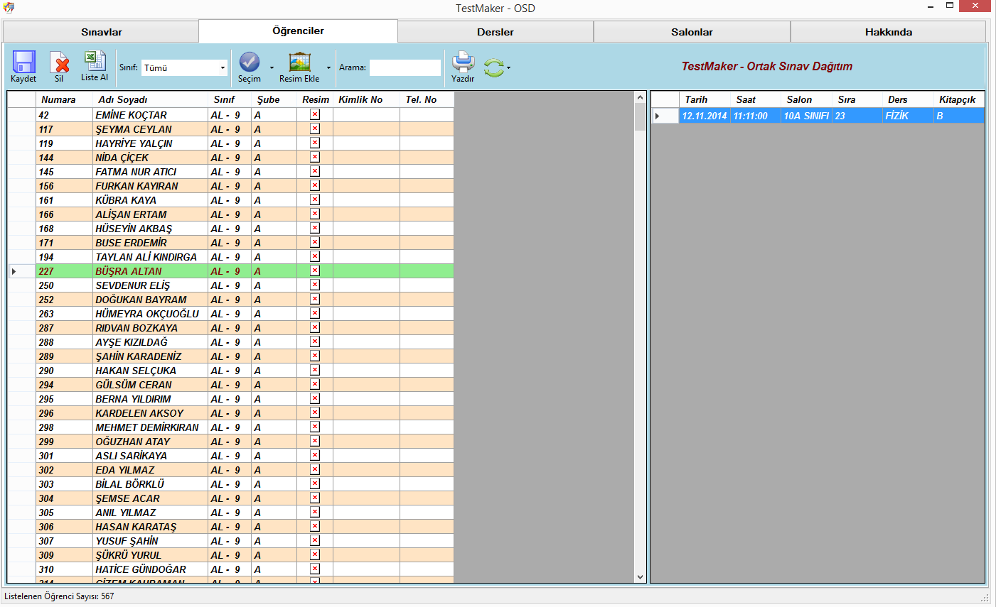 - Salon öğrenci listesi, salon oturma planı, öğrenci sınav bildiri formları, sınıf listesi, ders kitapçık dağılımı gibi raporlama özelliği