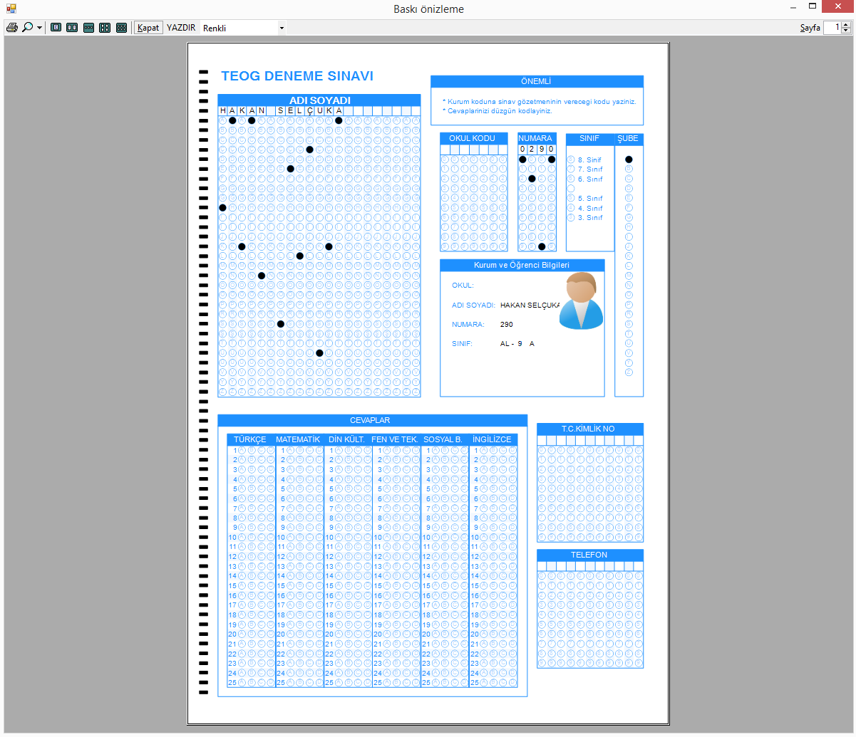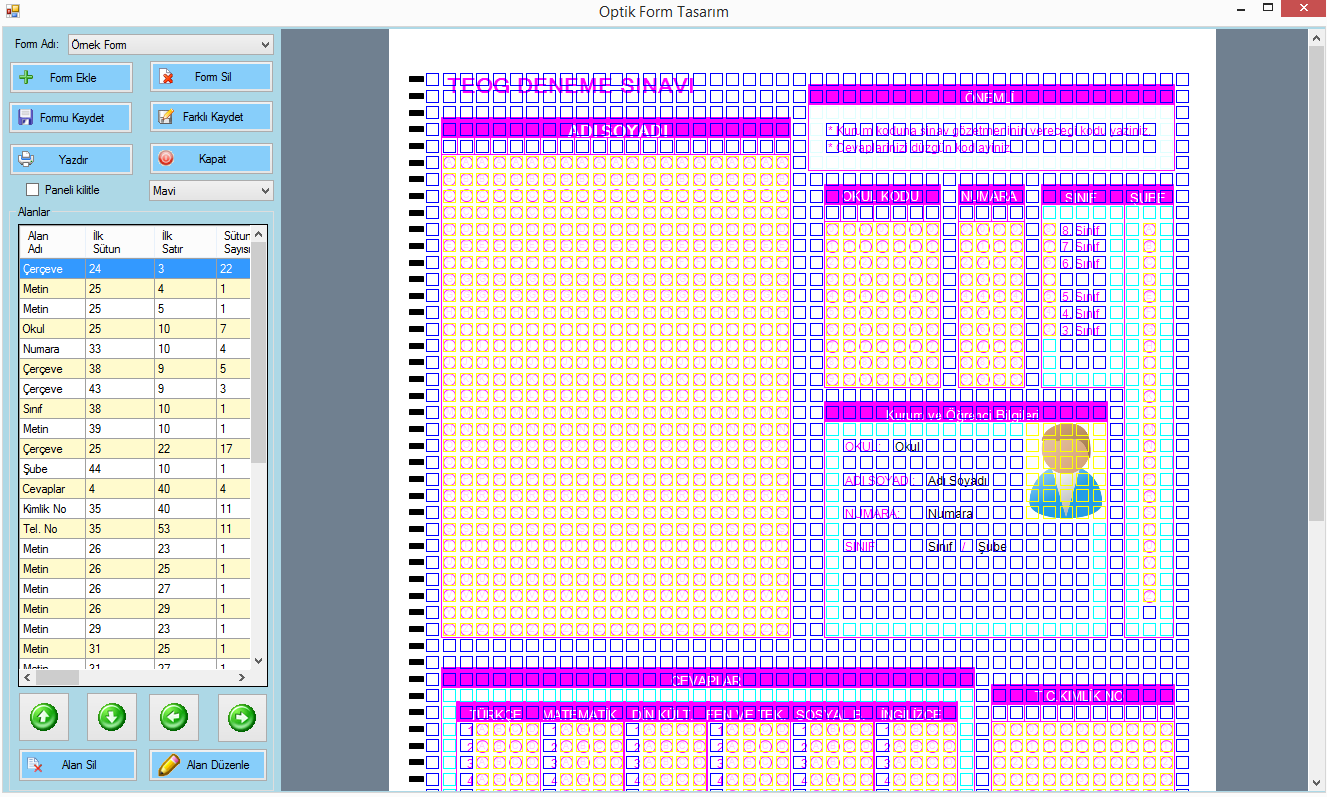 - Optik form tasarımı ve kodlanmış optik form yazdırma özelliği.