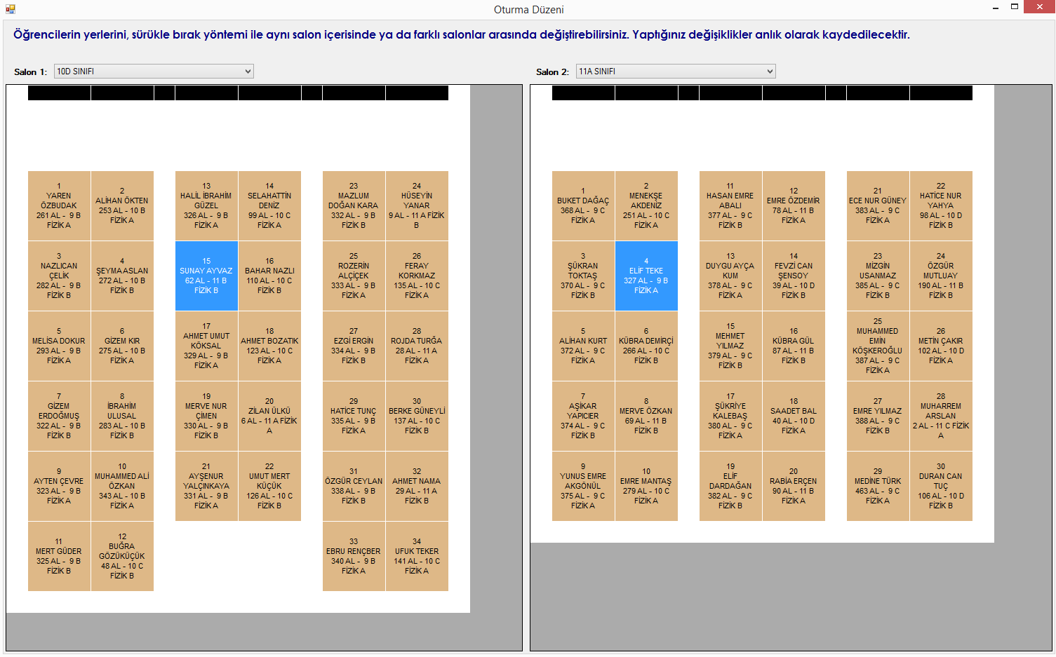 - Öğrencilere fotoğraf ekleme ve fotoğraflı oturma planı